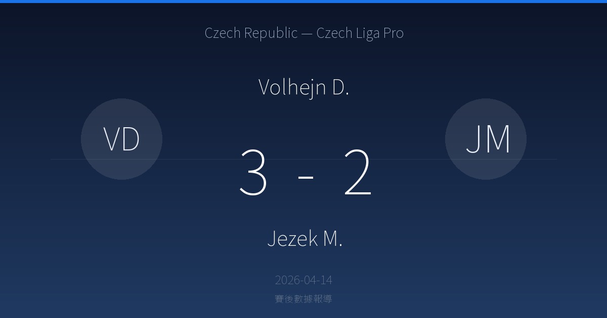 Volhejn D. 5 勝 · 0 平 · 5 負 Jezek M. (近 10 場)