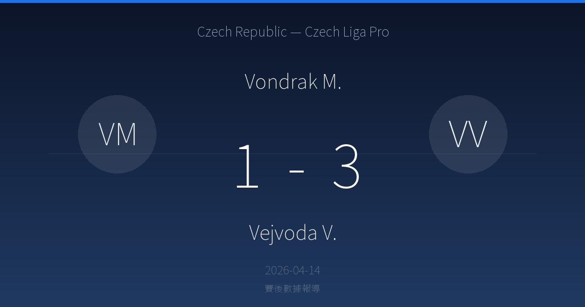 Vondrak M. 1-3 Vejvoda V.|Czech Republic — Czech Liga Pro賽後戰報