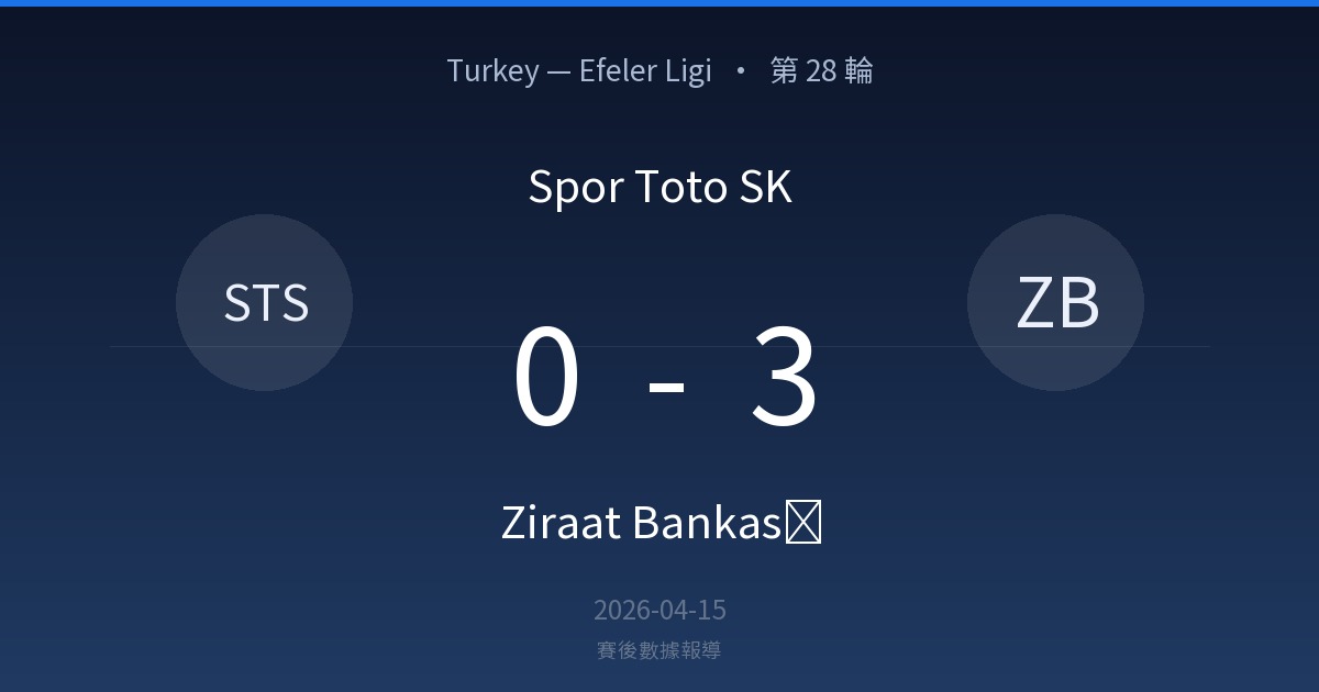 Spor Toto SK 0-3 Ziraat Bankası|Turkey — Efeler Ligi 第 28 輪賽後戰報