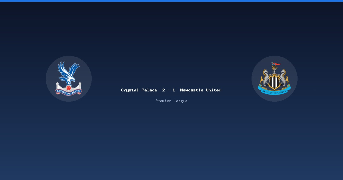 英超聯賽 (Premier League) 第 32 輪:Crystal Palace 2-1 Newcastle United。比賽日期:2026-04-12。完整比賽數據、射門分佈、最佳球員評分、陣容、事件時間軸與歷史對戰。