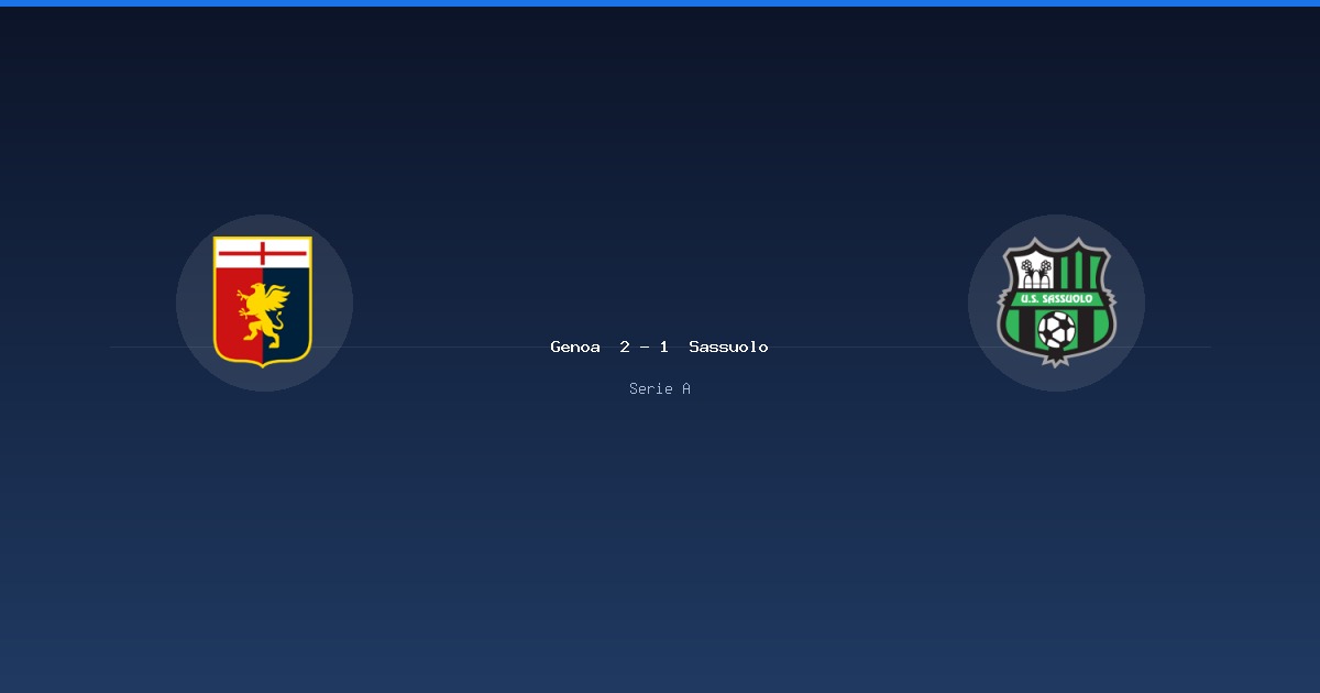 意甲聯賽 (Serie A) 第 32 輪:Genoa 2-1 Sassuolo。比賽日期:2026-04-12。完整比賽數據、射門分佈、最佳球員評分、陣容、事件時間軸與歷史對戰。