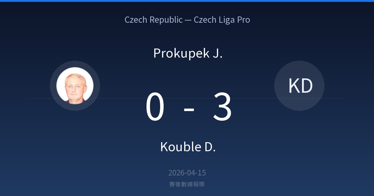 Prokupek J. 0-3 Kouble D.|Czech Republic — Czech Liga Pro賽後戰報