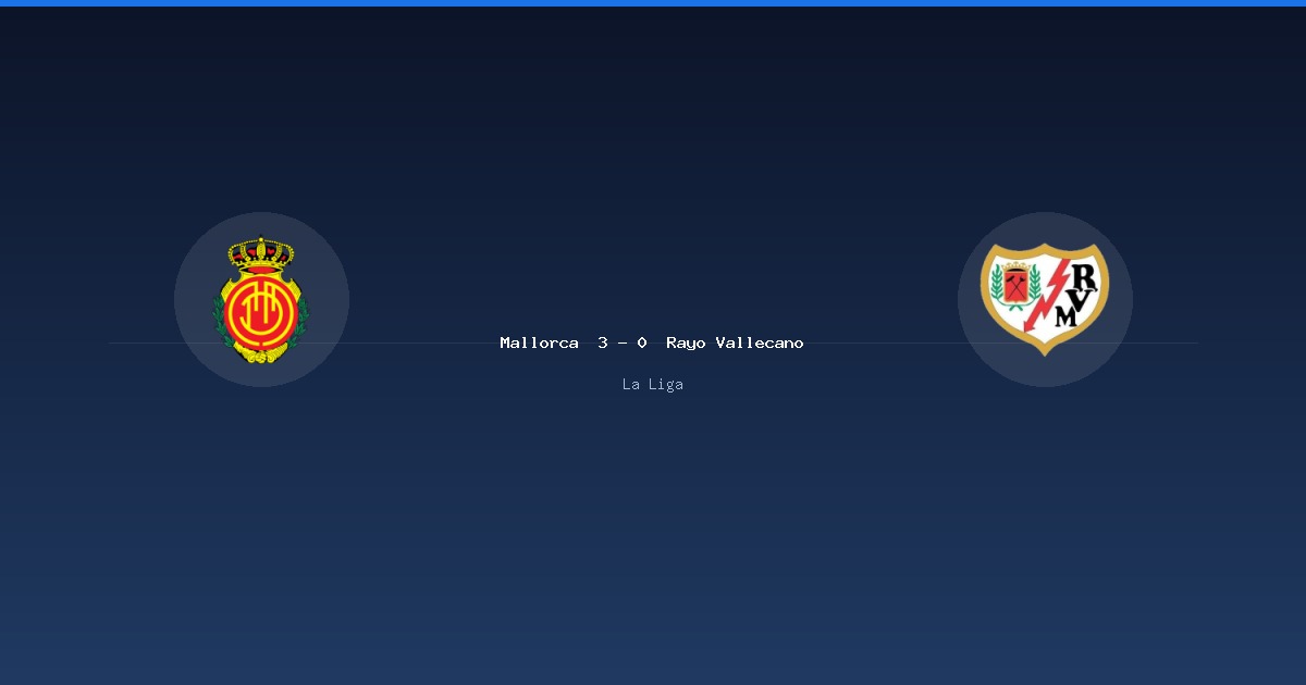 Mallorca 3-0 Rayo Vallecano — 西甲聯賽第 31 輪 2026 年 4 月 13 日 西甲聯賽 (La Liga) 第 31 輪:Mallorca 3-0 Rayo Vallecano。比賽日期:2026-04-12。完整比賽數據、射門分佈、最佳球員評分、陣容、事件時間軸與歷史對戰。