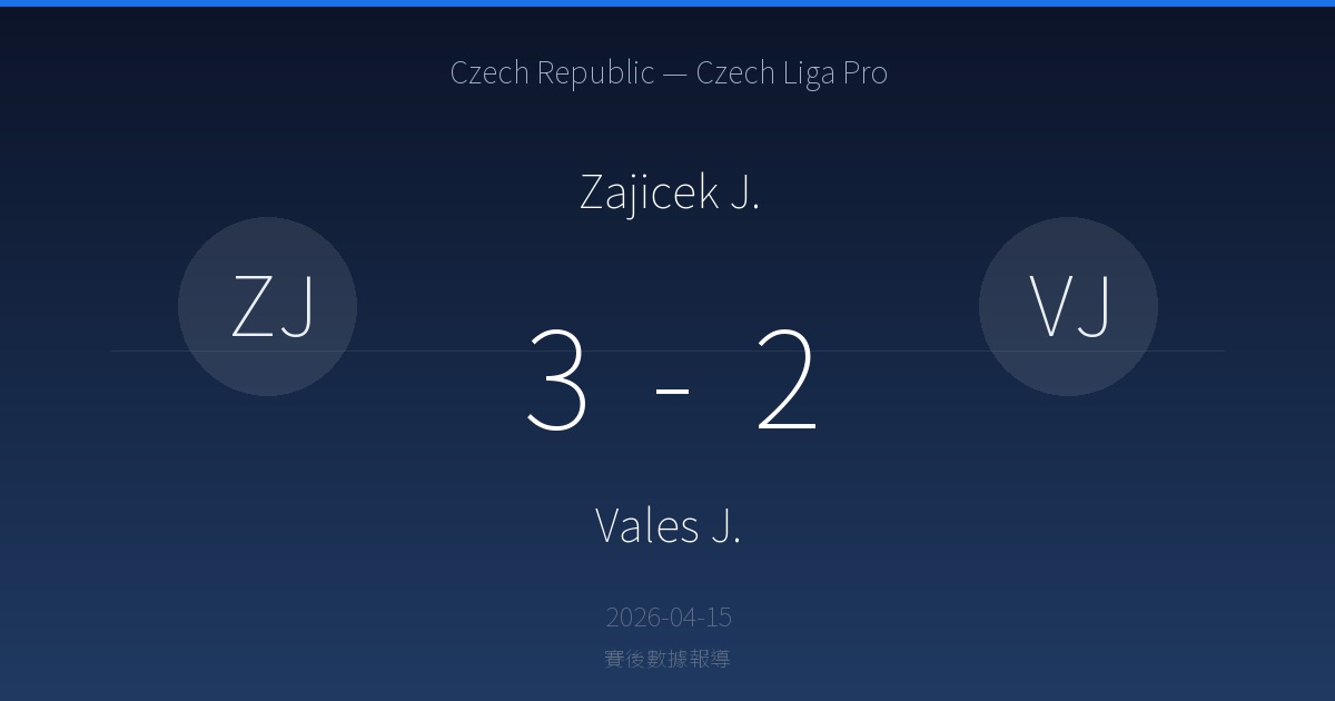 Zajicek J. 3-2 Vales J.|Czech Republic — Czech Liga Pro賽後戰報
