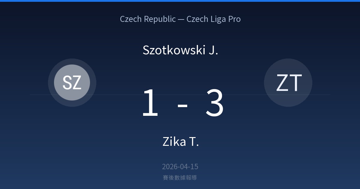 Szotkowski J. 1-3 Zika T.|Czech Republic — Czech Liga Pro賽後戰報