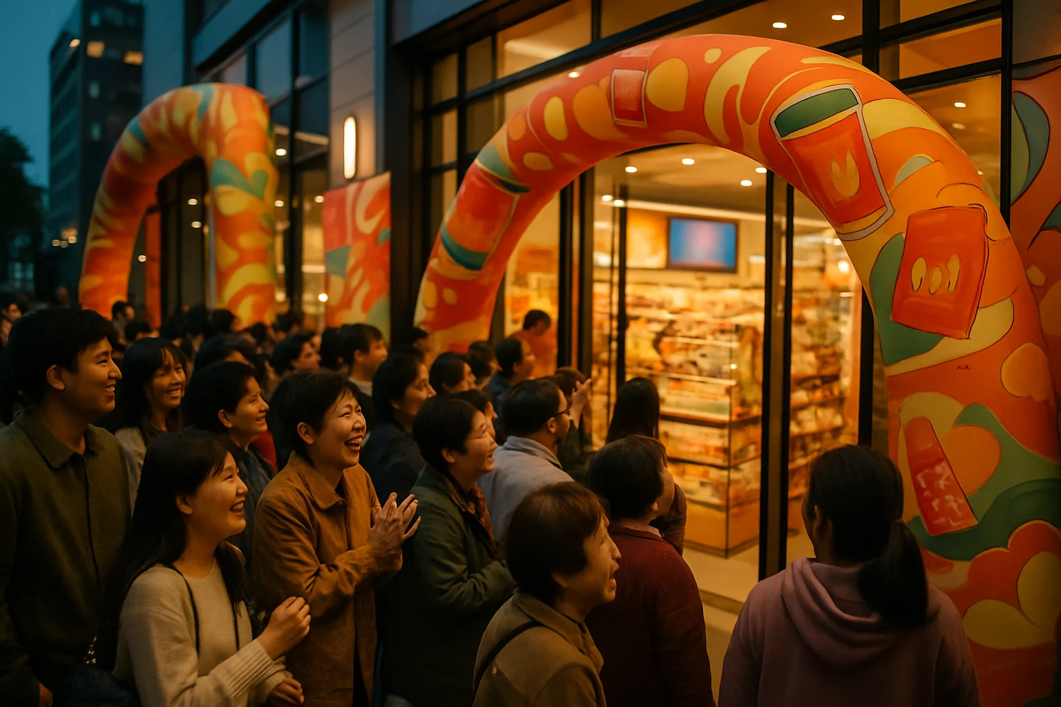开业当天,半小时内客流量就触发了门店的限流阈值。不是”人有点多”,是工作人员不得不在入口处举牌管控入场节奏。到第三天,热门品类货架多次被清空,店方对外宣布部分商品暂停售卖。