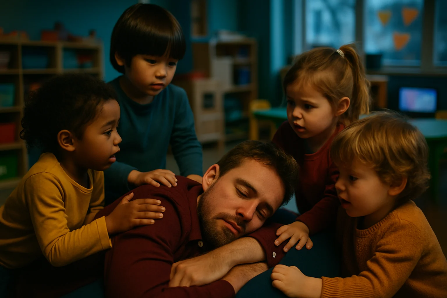 这件事最打动人的地方不是老师睡过头,而是孩子们的反应——没有大喊大叫,没有趁机捣乱,而是安静守在旁边等老师醒来。